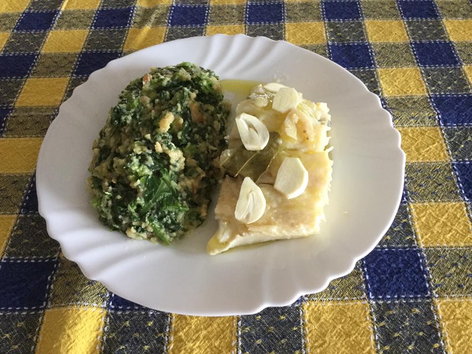 pouco. Juntar a broa cortada em pedaços pequenos e água de cozer os grelos até