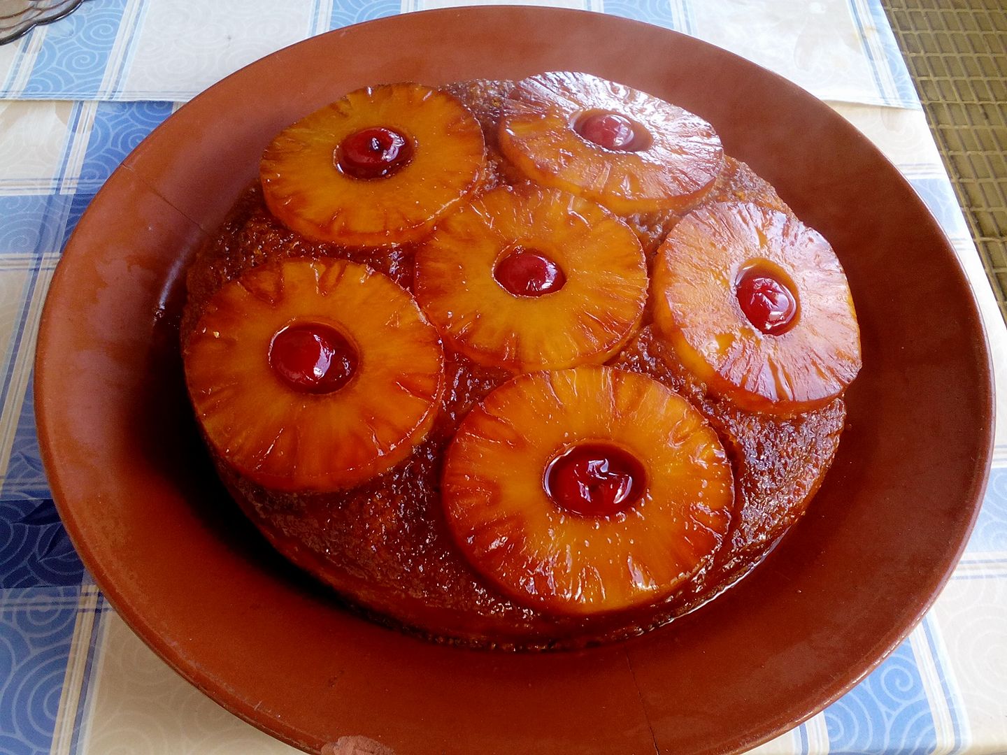 forma com o caramelo e coloca-se as rodelas do ananás no fundo da forma.