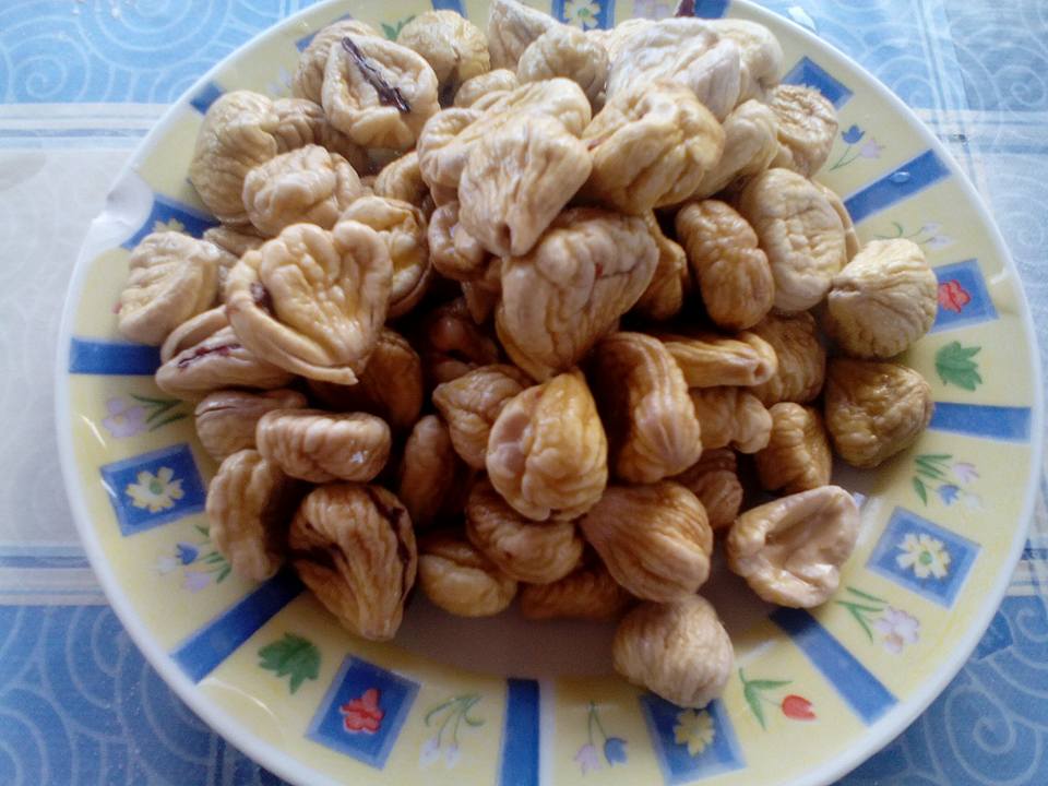 Quando as castanhas cozidas tira-se os coentros, os paus de canela, as cascas
