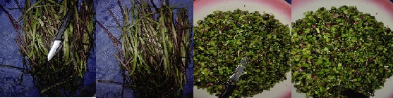 Numa frigideira frita-se com folha de alho e um alho muito picado,